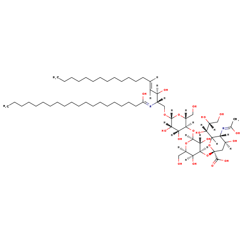 | SMILES | [H]C(CCCCCCCCCCCCC)=C([H])[C@@]([H])(O)[C@]([H])(CO[C@]1([H])O[C@]([H])(CO)[C@@]([H])(O[C@]2([H])O[C@]([H])(CO)[C@]([H])(O)[C@]([H])(O[C@@]3(C[C@]([H])(O)[C@@]([H])(N=C(C)O)C([H])(O3)[C@]([H])(O)[C@]([H])(O)CO)C(O)=O)[C@@]2([H])O)[C@]([H])(O)[C@]1([H])O)N=C(O)CCCCCCCCCCCCCCCCCCC | |||||||||||||||||||||||||||||||||||||||||||||||||||||||||