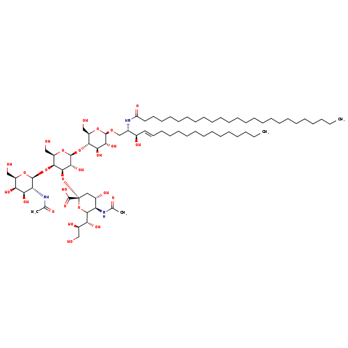 | SMILES | CCCCCCCCCCCCCCCCCCCCCCCCC(=O)N[C@@H](CO[C@@H]1O[C@H](CO)[C@@H](O[C@@H]2O[C@H](CO)[C@H](O[C@@H]3O[C@H](CO)[C@H](O)[C@H](O)[C@H]3NC(C)=O)[C@H](O[C@@]3(C[C@H](O)[C@@H](NC(C)=O)C(O3)[C@H](O)[C@H](O)CO)C(O)=O)[C@H]2O)[C@H](O)[C@H]1O)[C@H](O)\C=C\CCCCCCCCCCCCC |
