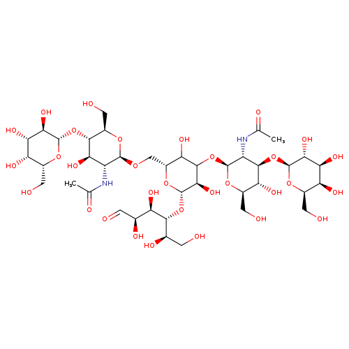 | SMILES | CC(=O)N[C@@H]1[C@@H](O)[C@H](O[C@@H]2O[C@H](CO)[C@H](O)[C@H](O)[C@H]2O)[C@@H](CO)O[C@H]1OC[C@H]1O[C@@H](O[C@H]([C@H](O)CO)[C@H](O)[C@@H](O)C=O)[C@H](O)C(O[C@@H]2O[C@H](CO)[C@@H](O)[C@H](O[C@@H]3O[C@H](CO)[C@H](O)[C@H](O)[C@H]3O)[C@H]2NC(C)=O)C1O |