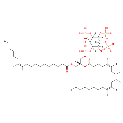 | SMILES | [H]\C(CCCCCC)=C(/[H])CCCCCCCCCC(=O)OC[C@]([H])(COP(O)(=O)O[C@@]1([H])C([H])(O)C([H])(OP(O)(O)=O)C([H])(OP(O)(O)=O)[C@@]([H])(OP(O)(O)=O)[C@@]1([H])O)OC(=O)CCC\C([H])=C(\[H])C\C([H])=C(\[H])C\C([H])=C(\[H])CCCCCCCC | |||||||||||||||||||||||||||||||||||||||||||||||||||||||||