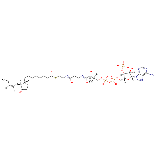 | (2R)-4-({[({[(2R,4R,5R)-5-(6-amino-9H-purin-9-yl)-4-hydroxy-3-(phosphonooxy)oxolan-2-yl]methoxy}(hydroxy)phosphoryl)oxy](hydroxy)phosphoryl}oxy)-2-hydroxy-3,3-dimethyl-N-(2-{[2-({8-[(1R,2S)-3-oxo-2-[(2Z)-pent-2-en-1-yl]cyclopentyl]octanoyl}sulfanyl)ethyl]-C-hydroxycarbonimidoyl}ethyl)butanimidate | Generator | | (2R)-4-({[({[(2R,4R,5R)-5-(6-amino-9H-purin-9-yl)-4-hydroxy-3-(phosphonooxy)oxolan-2-yl]methoxy}(hydroxy)phosphoryl)oxy](hydroxy)phosphoryl}oxy)-2-hydroxy-3,3-dimethyl-N-(2-{[2-({8-[(1R,2S)-3-oxo-2-[(2Z)-pent-2-en-1-yl]cyclopentyl]octanoyl}sulphanyl)ethyl]-C-hydroxycarbonimidoyl}ethyl)butanimidate | Generator | | (2R)-4-({[({[(2R,4R,5R)-5-(6-amino-9H-purin-9-yl)-4-hydroxy-3-(phosphonooxy)oxolan-2-yl]methoxy}(hydroxy)phosphoryl)oxy](hydroxy)phosphoryl}oxy)-2-hydroxy-3,3-dimethyl-N-(2-{[2-({8-[(1R,2S)-3-oxo-2-[(2Z)-pent-2-en-1-yl]cyclopentyl]octanoyl}sulphanyl)ethyl]-C-hydroxycarbonimidoyl}ethyl)butanimidic acid | Generator |