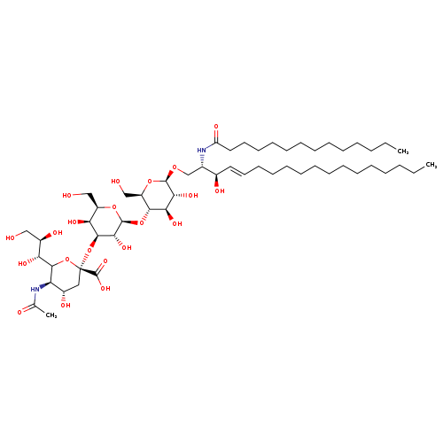 | SMILES | CCCCCCCCCCCCC\C=C\[C@@H](O)[C@H](CO[C@@H]1O[C@H](CO)[C@@H](O[C@@H]2O[C@H](CO)[C@H](O)[C@H](O[C@@]3(C[C@H](O)[C@@H](NC(C)=O)C(O3)[C@H](O)[C@H](O)CO)C(O)=O)[C@H]2O)[C@H](O)[C@H]1O)NC(=O)CCCCCCCCCCCCC |