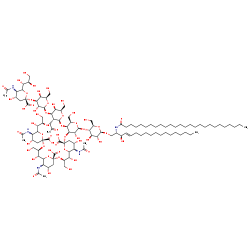 | Traditional Name | (2S,4S,5R)-2-{[(2R,3R,4S,5S,6R)-2-{[(2S,3R,4R,5R,6R)-2-{[(2R,3S,4R,5R,6S)-4-{[(2S,4S,5R)-2-carboxy-6-[(1S,2R)-2-{[(2S,4S,5R)-2-carboxy-6-[(1S,2R)-2-{[(2S,4S,5R)-2-carboxy-5-acetamido-4-hydroxy-6-[(1R,2R)-1,2,3-trihydroxypropyl]oxan-2-yl]oxy}-1,3-dihydroxypropyl]-5-acetamido-4-hydroxyoxan-2-yl]oxy}-1,3-dihydroxypropyl]-5-acetamido-4-hydroxyoxan-2-yl]oxy}-6-{[(2R,3S,4R,5R,6R)-6-{[(2S,3R,4E)-2-hexacosanamido-3-hydroxyoctadec-4-en-1-yl]oxy}-4,5-dihydroxy-2-(hydroxymethyl)oxan-3-yl]oxy}-5-hydroxy-2-(hydroxymethyl)oxan-3-yl]oxy}-5-hydroxy-6-(hydroxymethyl)-3-(2-oxopropyl)oxan-4-yl]oxy}-3,5-dihydroxy-6-(hydroxymethyl)oxan-4-yl]oxy}-5-acetamido-4-hydroxy-6-[(1R,2R)-1,2,3-trihydroxypropyl]oxane-2-carboxylic acid |