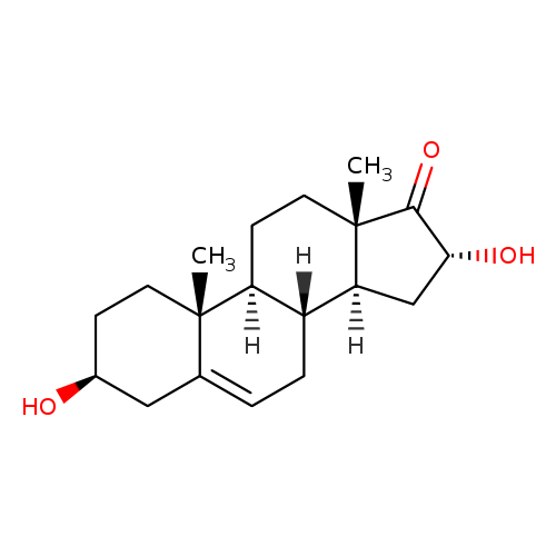 | Description | 16a-Hydroxydehydroisoandrosterone, also known as 3b,16a-dihydroxy-androst-5-en-17-one or 5-androstene-3beta,16alpha-diol-17-one, belongs to the class of organic compounds known as androgens and derivatives. These are 3-hydroxylated C19 steroid hormones. They are known to favor the development of masculine characteristics. They also show profound effects on scalp and body hair in humans. Thus, 16a-hydroxydehydroisoandrosterone is considered to be a steroid lipid molecule. 16a-Hydroxydehydroisoandrosterone is a very hydrophobic molecule, practically insoluble (in water), and relatively neutral. |