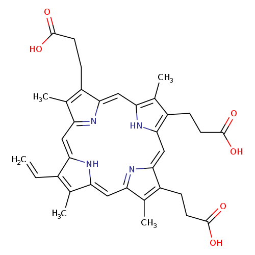 | SMILES | CC1=C2NC(\C=C3/N=C(/C=C4\N\C(=C/C5=N/C(=C\2)/C(CCC(O)=O)=C5C)C(C=C)=C4C)C(C)=C3CCC(O)=O)=C1CCC(O)=O |