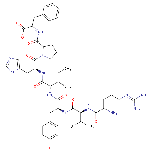 | SMILES | CC[C@H](C)[C@H](NC(=O)[C@H](CC1=CC=C(O)C=C1)NC(=O)[C@@H](NC(=O)[C@@H](N)CCCN=C(N)N)C(C)C)C(=O)N[C@@H](CC1=CN=CN1)C(=O)N1CCC[C@H]1C(=O)N[C@@H](CC1=CC=CC=C1)C(O)=O |