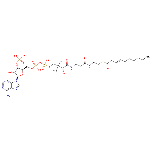| IUPAC Name | {[(2R,3S,4R,5R)-5-(6-amino-9H-purin-9-yl)-2-({[({[(3R)-3-{[2-({2-[(3E)-dec-3-enoylsulfanyl]ethyl}carbamoyl)ethyl]carbamoyl}-3-hydroxy-2,2-dimethylpropoxy](hydroxy)phosphoryl}oxy)(hydroxy)phosphoryl]oxy}methyl)-4-hydroxyoxolan-3-yl]oxy}phosphonic acid |