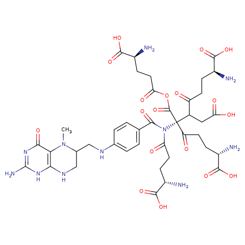 | Traditional Name | (2S,6R,11S)-2,11-diamino-6-{N-[(4S)-4-amino-4-carboxybutanoyl]-1-(4-{[(2-amino-5-methyl-4-oxo-1,6,7,8-tetrahydropteridin-6-yl)methyl]amino}phenyl)formamido}-6-({[(4S)-4-amino-4-carboxybutanoyl]oxy}carbonyl)-7-(carboxymethyl)-5,8-dioxododecanedioic acid |
