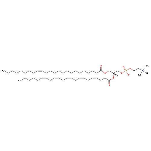 DescriptionPC(24:1(15Z)/22:5(4Z,7Z,10Z,13Z,16Z)) is a phosphatidylchloline (PC). It is a glycerophospholipid in which a phosphorylcholine moiety occupies a glycerol substitution site. As is the case with diacylglycerols, phosphatidylcholines can have many different combinations of fatty acids of varying lengths and saturation attached to the C-1 and C-2 positions. PC(24:1(15Z)/22:5(4Z,7Z,10Z,13Z,16Z)), in particular, consists of one 15Z-tetracosenoyl chain to the C-1 atom, and one 4Z,7Z,10Z,13Z,16Z-docosapentaenoyl to the C-2 atom. In E. coli, PCs can be found in the integral component of the cell outer membrane. They are hydrolyzed by Phospholipases to a 2-acylglycerophosphocholine and a carboxylate.