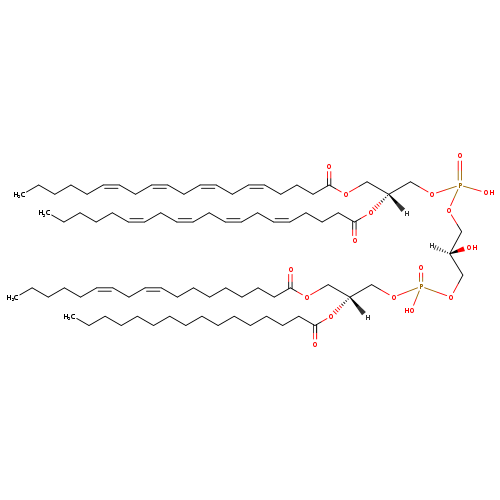 | SMILES | [H]C(O)(COP(O)(=O)OC[C@@]([H])(COC(=O)CCCCCCC\C=C/C\C=C/CCCCC)OC(=O)CCCCCCCCCCCCCCC)COP(O)(=O)OC[C@@]([H])(COC(=O)CCC\C=C/C\C=C/C\C=C/C\C=C/CCCCC)OC(=O)CCC\C=C/C\C=C/C\C=C/C\C=C/CCCCC |