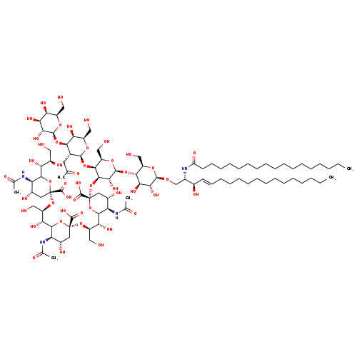 | SMILES | CCCCCCCCCCCCCCCCCC(=O)N[C@@H](CO[C@@H]1O[C@H](CO)[C@@H](O[C@@H]2O[C@H](CO)[C@H](O[C@@H]3O[C@H](CO)[C@H](O)[C@H](O[C@@H]4O[C@H](CO)[C@H](O)[C@H](O)[C@H]4O)[C@H]3CC(C)=O)[C@H](O[C@@]3(C[C@H](O)[C@@H](NC(C)=O)C(O3)[C@H](O)[C@@H](CO)O[C@@]3(C[C@H](O)[C@@H](NC(C)=O)C(O3)[C@H](O)[C@@H](CO)O[C@@]3(C[C@H](O)[C@@H](NC(C)=O)C(O3)[C@H](O)[C@H](O)CO)C(O)=O)C(O)=O)C(O)=O)[C@H]2O)[C@H](O)[C@H]1O)[C@H](O)\C=C\CCCCCCCCCCCCC |