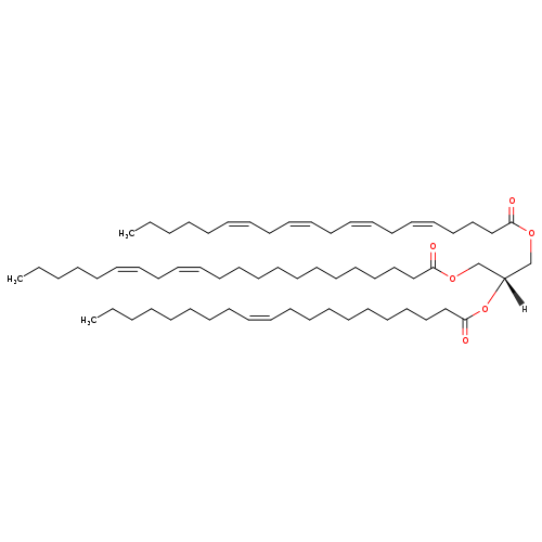 | SMILES | [H][C@@](COC(=O)CCCCCCCCCCC\C=C/C\C=C/CCCCC)(COC(=O)CCC\C=C/C\C=C/C\C=C/C\C=C/CCCCC)OC(=O)CCCCCCCCC\C=C/CCCCCCCC |